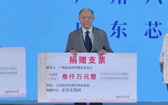 9月15日,霍英东集团在广州南沙教育基金会首届爱心公益音乐会上捐赠3000万元,用于南沙教育公益事业。