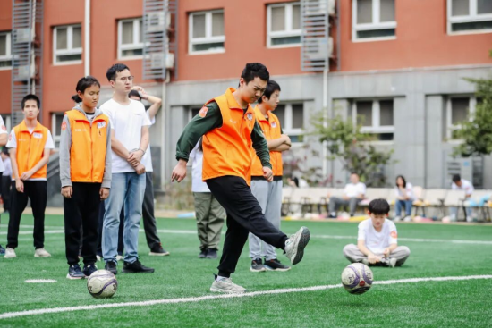 10月15日是国际盲人节,中国盲人协会与滴滴公益在“2025视障少儿自主生活成长营”中特别设计了一场“看不见的足球赛”,邀请10位视障少儿营员与10组滴滴员工家庭志愿者共同配合完成该赛事。