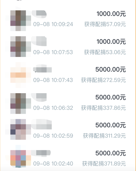 更令人不解的是,有些捐赠者将给同一个项目的捐款,分成多次捐赠。比如,一网名为“强”的“爱心人士”,捐款13次,每次金额为50元, 650元“善款”共计获得99.97元“配捐”。