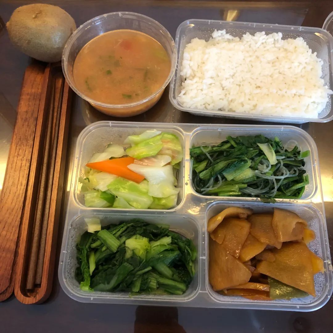 苏一格自带不锈钢饭盒打包饭菜,用可重复使用的吸管喝椰汁、奶茶等
