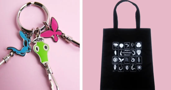 博物馆商店里售卖的纪念品更是“可爱”——各种寄生虫明信片,8.8米真田虫的主题T恤,以及用亚克力材料包装的寄生虫手机吊坠,当然也少不了真双身虫爱情主题纪念品。