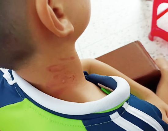 学生家长发文称:“校长钟某某(因)我儿子升国旗忘记戴红领巾,就把儿子脖子打撸成这样……这种教育行为怎能忍得了?”